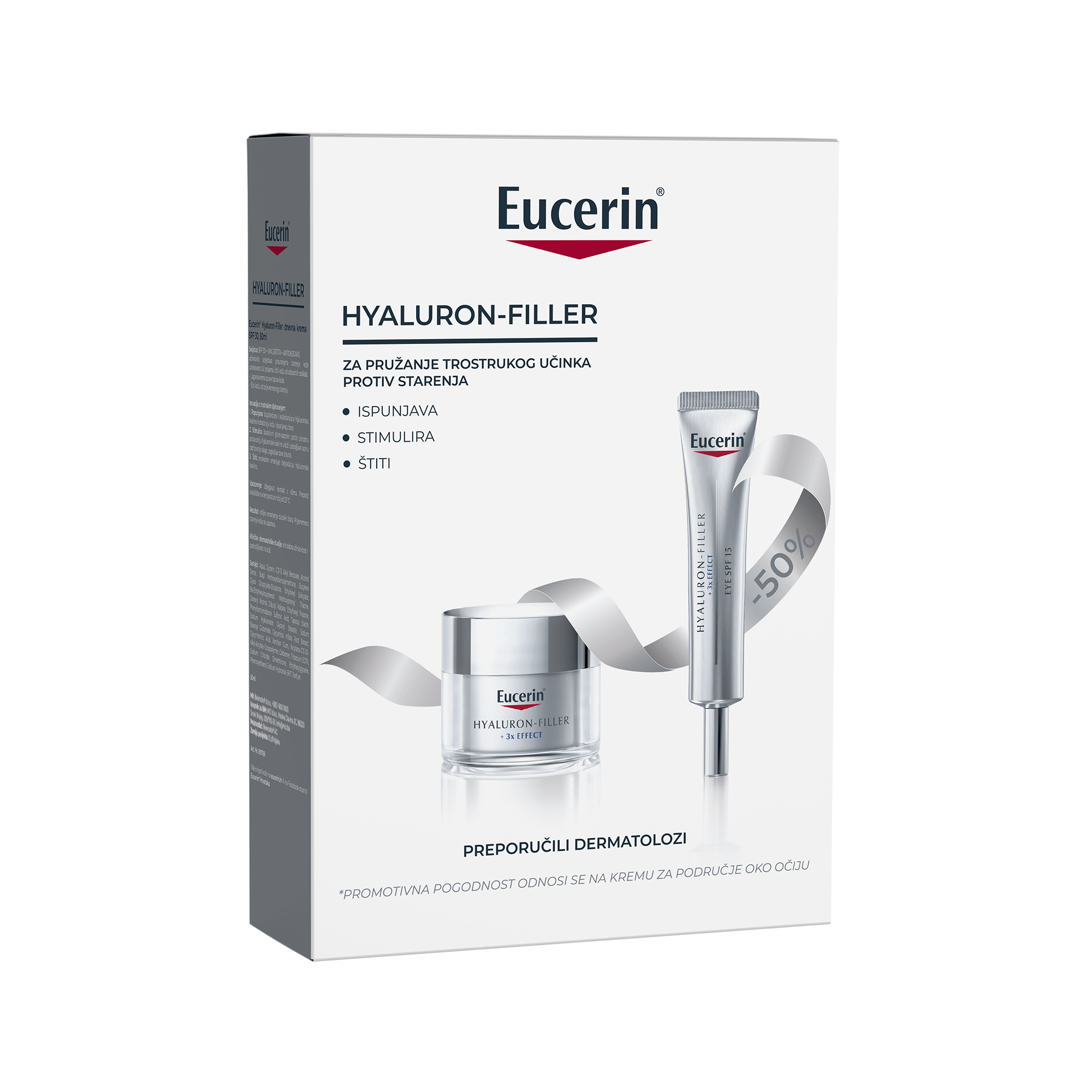 Eucerin Hyaluron-Filler dnevna krema SPF 15 s formulom 3x učinka suzbija ovaj proces: