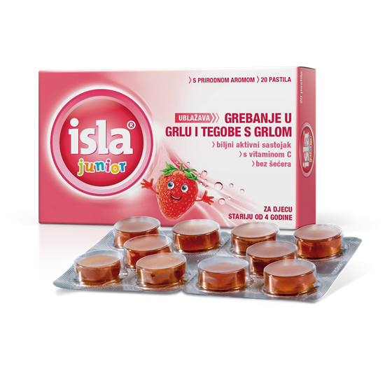 Isla® junior pastile sadrže dokazani ekstrakt islandskog lišaja. Štiti i vlaži: prilikom otapanja pastile u ustima, specijalni ekstrakt poput melema oblaže sluznicu usta, grla i ždrijela. Stvara se zaštitni film koji štiti sluznicu od daljnje iritacije i napada. Na ovaj način se mogu efikasno ublažiti tegobe sa grlom i glasom kao što su kašalj, bol u grlu ili otežano gutanje.
