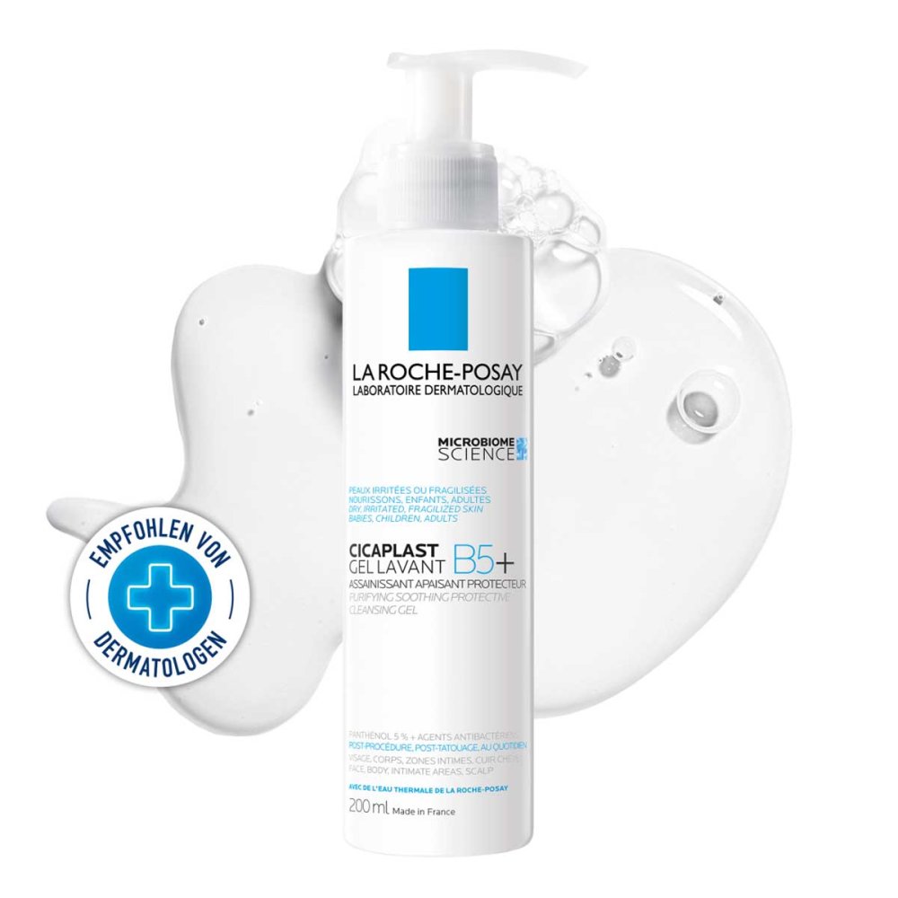 Način primjene: Stavite gel za čišćenje na mokre ruke, napravite pjenu i nanesite na lice, tijelo ili vlasište. Temeljito isperite. Ne isušuje. Optimalna tolerancija, prikladno za osjetljivu kožu. Ne nadražuje oči. Ne nanosite na otvorene rane. U slučaju izravnog dodira s očima temeljito isprati vodom. Zatim nanesite Cicaplast Baume B5+ za optimalno obnavljanje kože.