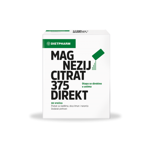 Magnezijum Citrat 375 direkt prašak namijenjen je osobama koje osjećaju umor i iscrpljenost, nedostatak energije, fizički aktivnim osobama, pojedincima za zdravlje mišića i živčanog sistema. Vrećice sadrže magnezijum u obliku magnezijevog citrata koji se lako i brzo apsorbuje u organizmu.