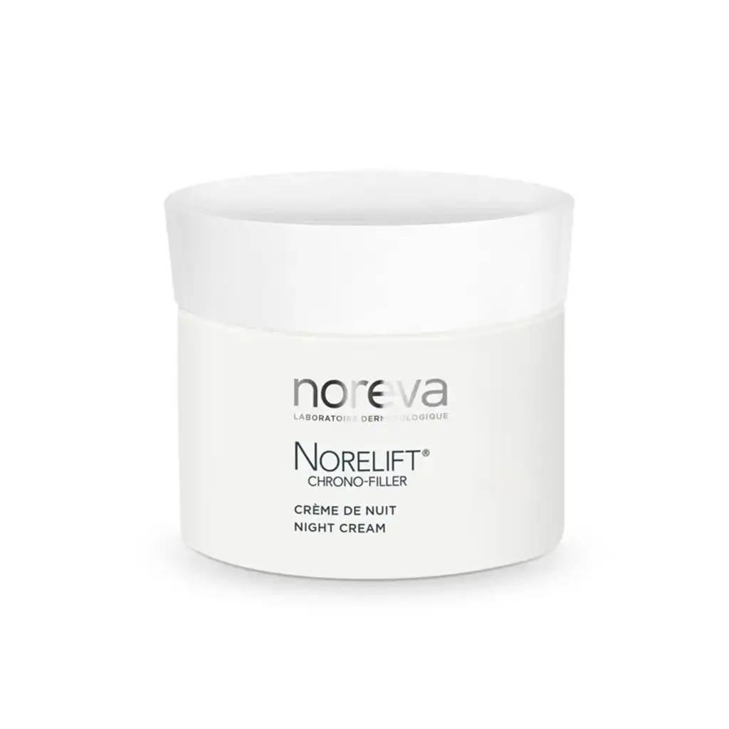 Učvršćujuća njega protiv bora. Anti-age. Norelift Chrono-filler noćna krema koristi koktel aktivnih sastojaka za regeneraciju, restrukturiranje i zaštitu kože: